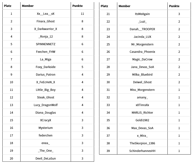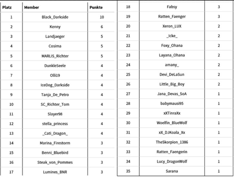 2 Platz: Finara_Ghost, X_Darkwarrior_X, _Ronja_12